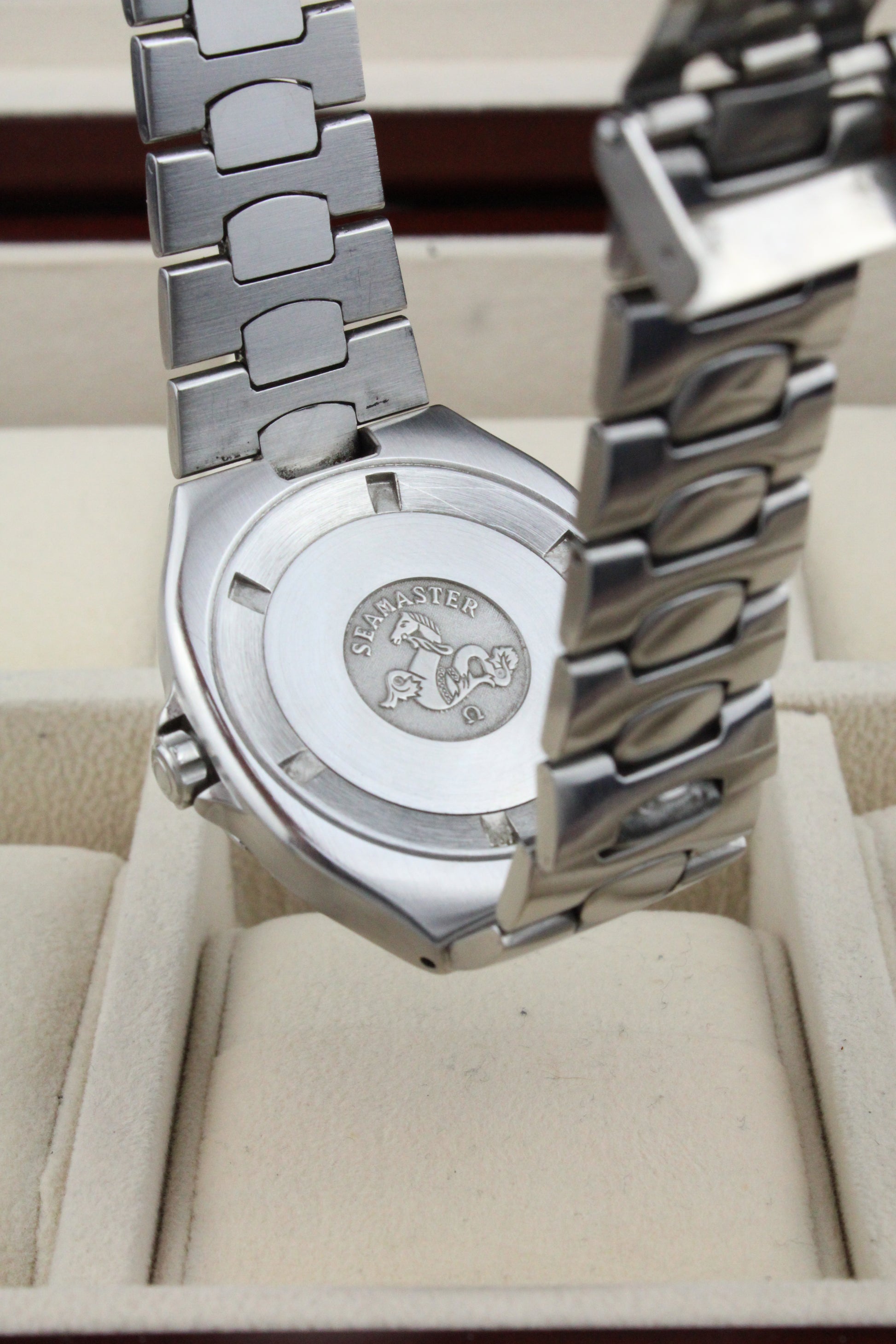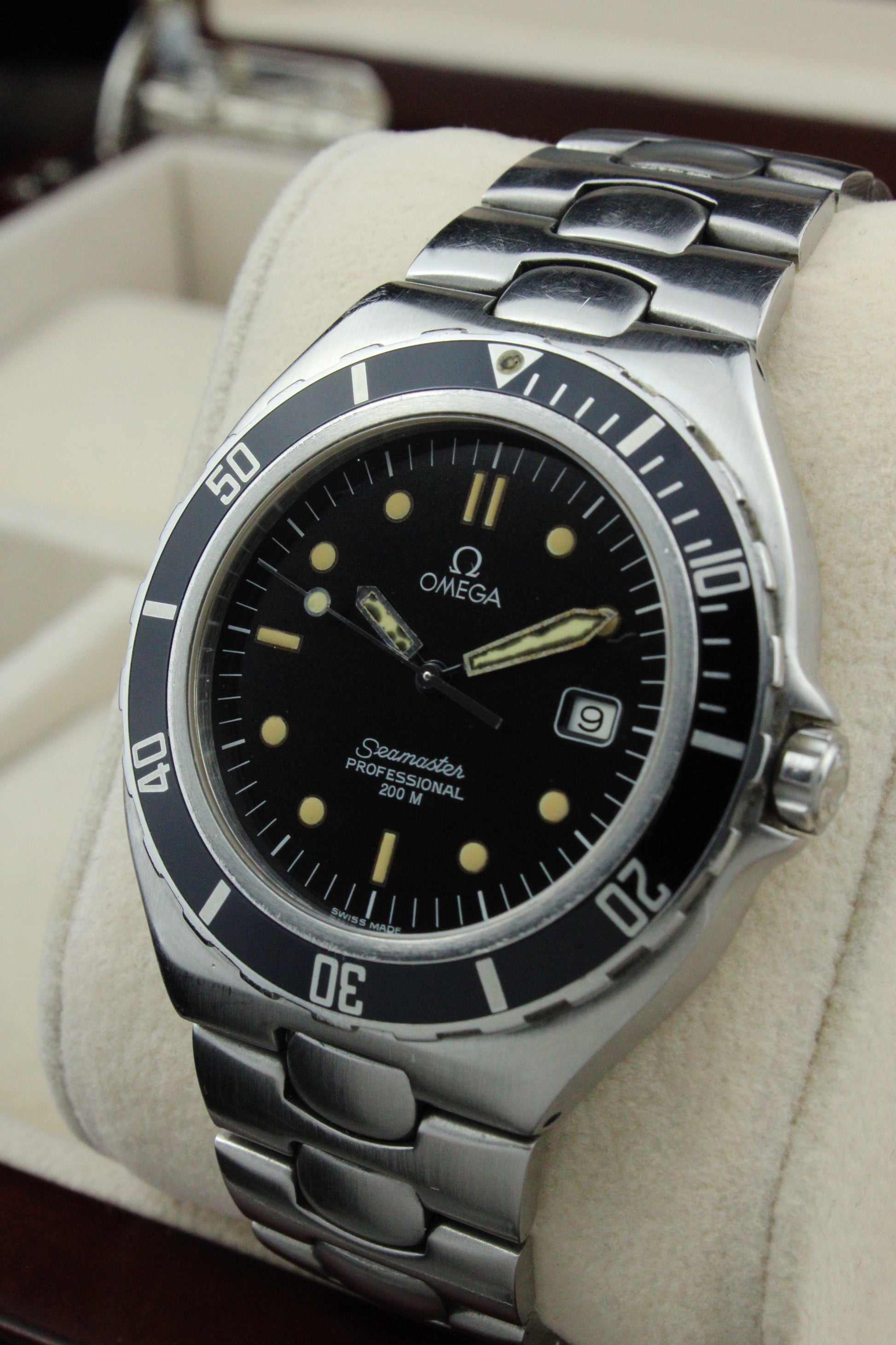 Step into vintage dive‑watch royalty. This Seamaster 200m Ref. 396.1041 features a robust 38 mm stainless steel case, unidirectional bezel and screw‑down crown, engineered for 200 m water resistance. Powered by a high‑precision quartz movement, it pairs serious performance with streamlined style. The black dial and bold sword‑style hands deliver confident legibility, while the integrated steel bracelet completes the timeless silhouette. A sleek, heritage‑driven piece for those seeking understated luxury with real dive‑credentials.